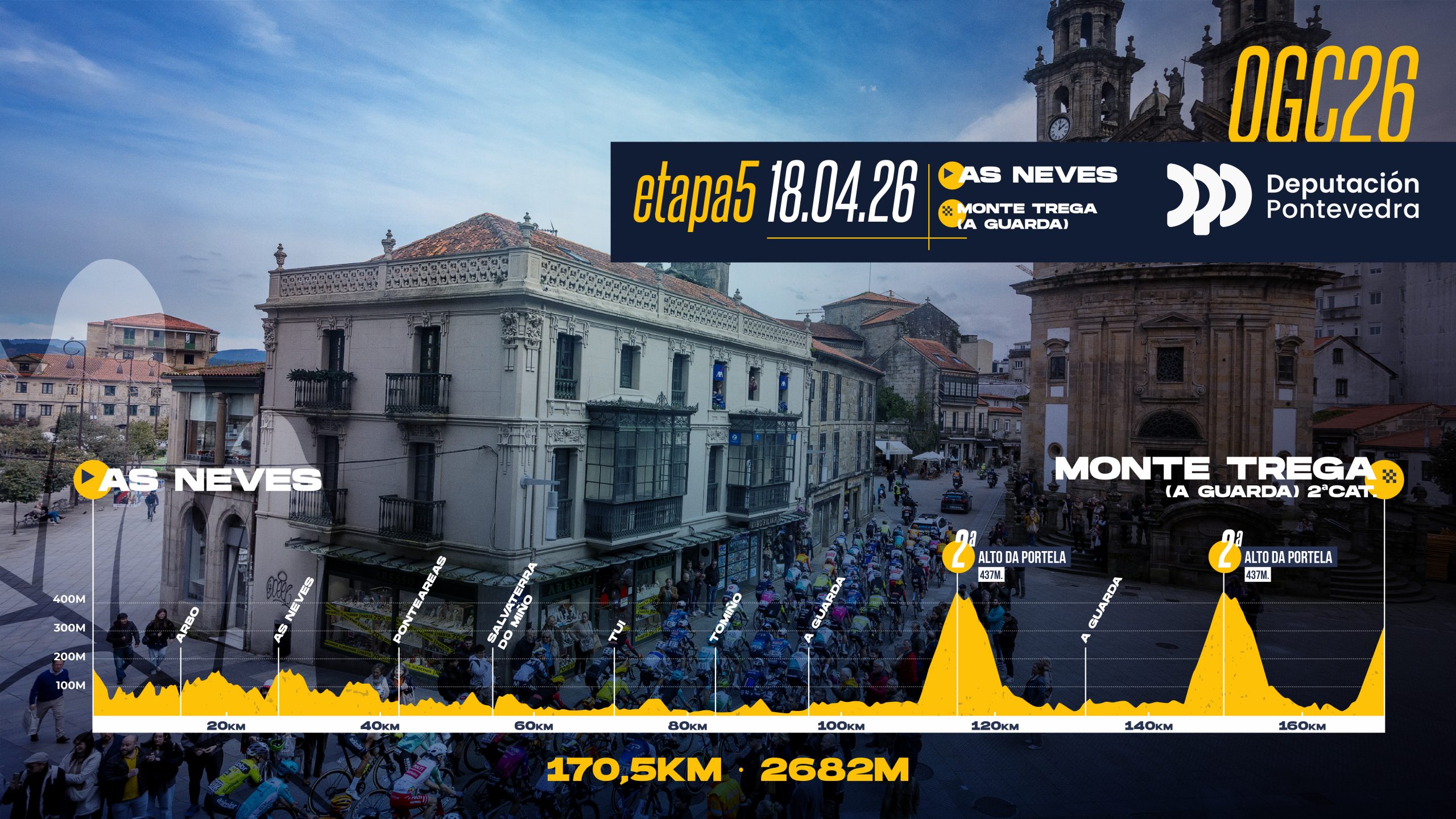 Etapa 5 Camiño de Pontevedra 18 de abril As neves - Monte trega (a guarda) 170,5 Km. 2682 m. desnivel Perfil Track Perfil Track Descarga Track Etapa 5 Ubicaciones y enlaces